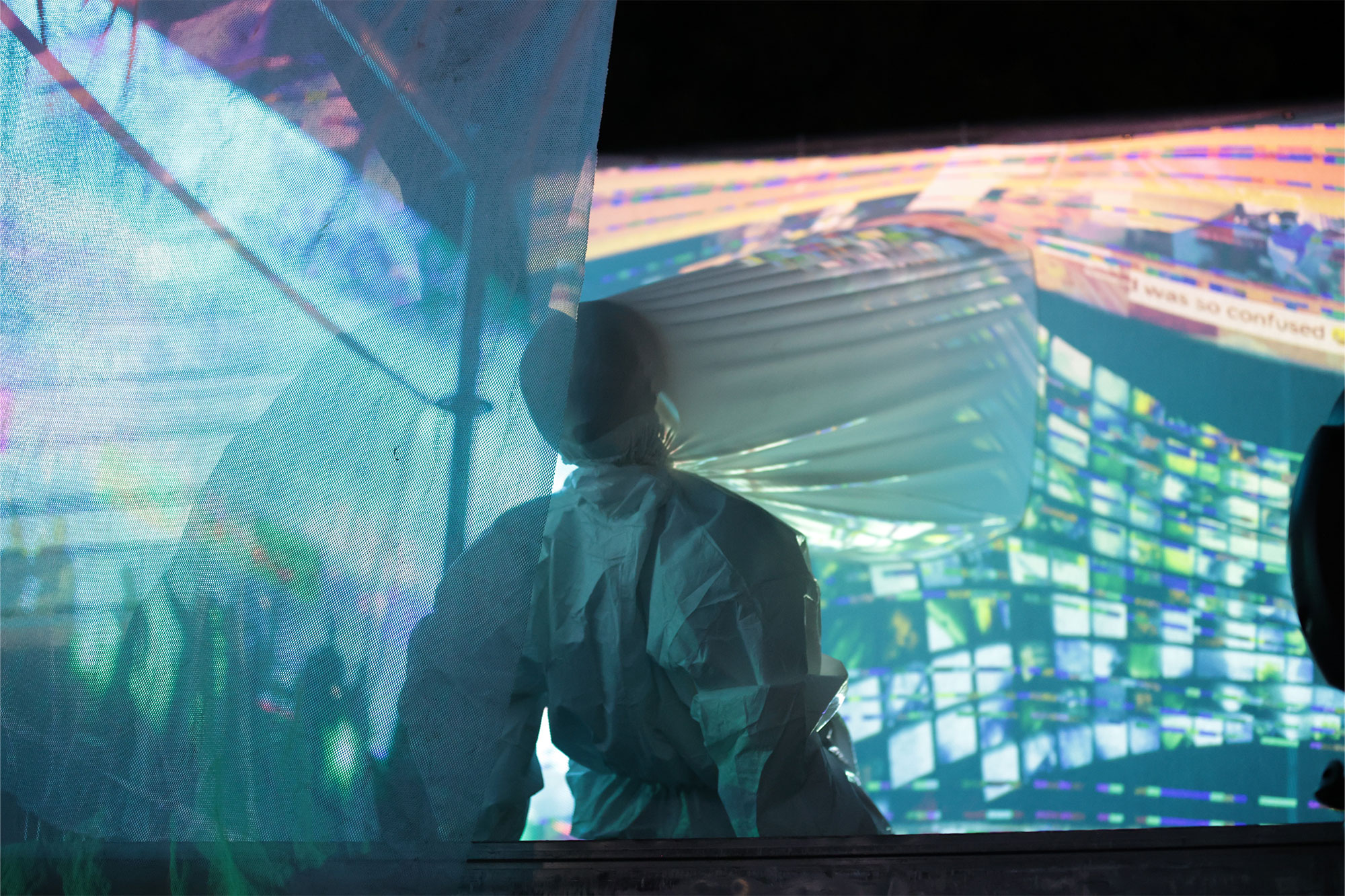 space of tension and transformation. A world in collapse. A portal opening. A visceral ride